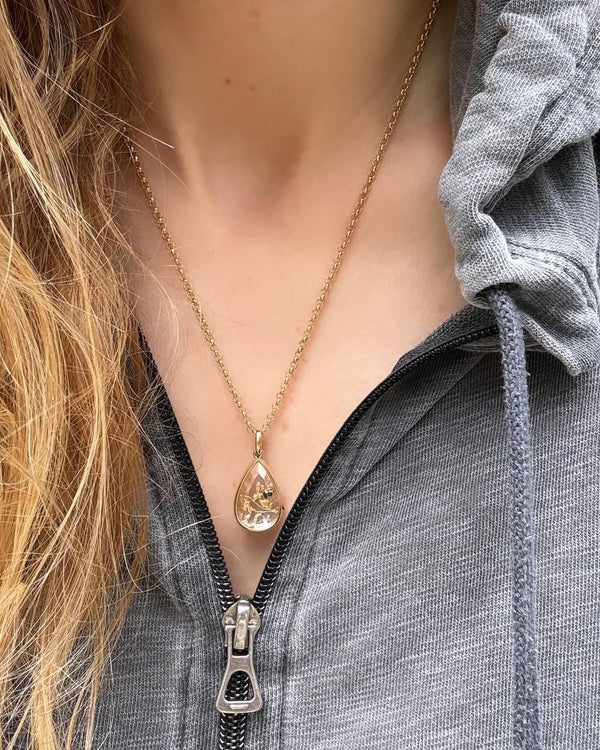 Cuidadosamente elaborada a partir de cobre bañado en oro y combinada con una cadena clásica de 45 cm (18 pulgadas), esta pieza está diseñada para guardar los recuerdos y las personas que más aprecias.